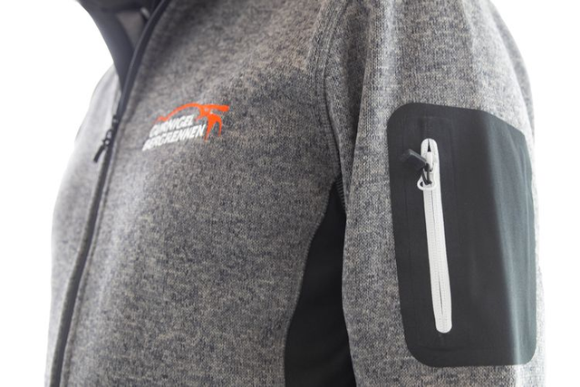 Wärmende und anschmiegsame Strick-Fleece-Jacke, körpernahe, modische Passform, elastische, schwarze Seitenbereiche aus 100% Polyester, 2 geräumige, vordere Reissverschlussseitentaschen und eine großzügige Armtasche mit Reißverschluss, 2 offene Innentaschen, YKK-Frontreissverschluss